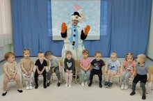 Сегодня к воспитанникам первой младшей группы в гости пришел Снеговик. Он был грустный и опечален тем, что совершенно одинок, нет друзей, а в детском саду всегда много детей и весело.