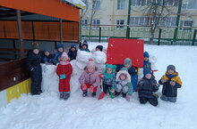 Прогулка зимой очень увлекательное занятие для детей. Еще только начало зимы, а снега на улице уже много. Сегодня было тепло, снег был липкий. Дети подготовительной группы не стали терять время, построили снежную базу.