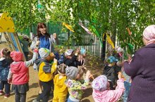 Безнең балалар бакчасында "Каен-рус халкының гүзәле"дигән йомгаклау чарасы узды. Нәкъ менә каенга илебезнең бөек шагыйрьләре шигырьләр язганнар. Бәйрәмдә балалар каенның файдасы, халык мәдәнияте һәм әлеге күңел ачуны үткәргәндә традицияләр турында күп кызыклы мәгълүмат алдылар. Балалар бик теләп рус халык уеннары уйнадылар, шигырьләрне аңлаешлы итеп укыдылар, каен турында табышмаклар чиштеләр. Бәйрәм ахырында, традиция буенча, балалар тәрбиячеләр белән бергә каен ботакларына төрле төстәге тасмалар бәйләделәр. В нашем детском саду прошло итоговое мероприятие "Береза-русская красавица". Белоствольная красавица олицетворяет собой русскую душу: чистую, щедрую. Недаром именно березе посвящали свои стихотворения великие поэты нашей страны. На празднике дети узнали много интересного об истории его происхождения, пользы березы, народной культуре и традициях при проведении данного развлечения. Дети с удовольствием играли в русские народные игры, водили хоровод, выразительно читали стихи, отгадывали загадки о березе. В завершении праздника, согласно традиции, дети вместе с воспитателями повязали разноцветные ленточки на ветви березы.