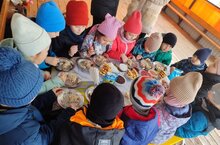 Теплое чаепитие с ароматными блинами и поедание каши. 27.03.2025