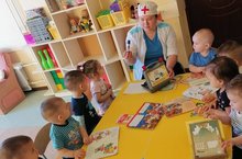 В рамках недели,посвященной детским книгам, с воспитанниками и родителями старшей группы была проведена викторина по любимым детским произведениям. Участники отвечали на заданные вопросы с лёгкостью и проявили смекалку. За это воспитатель группы Нигъматзянова Г.Р. наградила отличившихся значком "Лучший читатель".