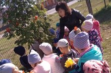 Обучение русскому языку в режимные моменты проводится в виде целевых прогулок. Совместная деятельность проходит весело и познавательно. Сегодня воспитанники средней группы научились выделять характерные признаки осени, а также смогли понаблюдать за изменениями в природе. Из собранных детьми опавших листьев сделали большой осенний букет и подарили воспитателю группы.
