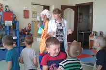 Веселые клоуны устроили для наших воспитанников настоящий праздник: смешные сценки, добрые песни , игры - соревнования, танцы и многое другое принесли они детям в подарок. Ведь как известно, дружба начинается с улыбки. Думаем, после такого зажигательного мероприятия дети захотят дружить со всем миром,а настроение их будет замечательным и позитивным.