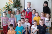 Сегодня воспитанники подготовительной группы №1 встретились с российским спортсменом, заслуженным мастером спорта России, паралимпийским чемпионом Рушаном Миннегуловым. Известный лыжник и биатлонист рассказал о том, как и когда начал заниматься спортом, какие имеет достижения и заслуги, посоветовал правильно питаться , заниматься физкультурой и вырабатывать силу воли и упорство. Ответив на вопросы детей, Рушан принял участие в шашечном турнире с сильнейшим игроком группы. В заключении дети поблагодарили спортсмена за встречу и сфотографировались с ним на долгую память.
