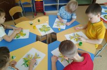 Нетрадиционные техники рисования важны в развитии фантазии, творчества и моторики ребенка. Детям нравится, не боясь испачкаться, рисовать не кисточками, а ладошками, пальчиками. Поэтому сегодня весеннюю мимозу ребята рисовали именно таким методом, окуная свои пальчики в краску. Получилось очень красиво. Да и дети были в восторге от такого занятия.