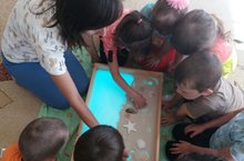 Воспитанники 1 младшей группы весело проводят время: превратившись в настоящий велосипед, они отправились на поиски мяча. Преодолев препятствия, они нашли мяч, вспомнили какого он цвета. А затем все вместе слепили его, чтобы поиграть в увлекательную игру. Вот так мы готовимся встретить новый учебный год.