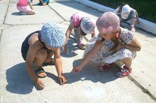 Лето каждый день радует нас хорошей погодой, жаркими и солнечными днями. Самое время для игр на свежем воздухе. И конечно же невозможно представить себе детские забавы без рисования на асфальте. Сегодня именно этим занимались наши воспитанники. Дети сделали множество рисунков на тему "День радуги".Территория детского сада оживилась и стала яркой, как радуга.