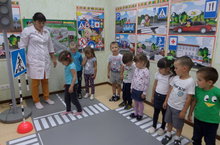 В детском саду начался Месячник безопасности детей . Ответственность педагогического коллектива за полноценное развитие, эмоциональное благополучие и жизнь каждого ребенка требует работы в данном направлении. В связи с этим разработан план работы по предупреждению и ликвидации чрезвычайных ситуаций, по обеспечению пожарной безопасности и безопасности на водных объектах. Воспитанников знакомят с правилами поведения на дороге, в лесу, в быту, проводятся сюжетно - ролевые игры по ПДД, осуществляется работа в автоклассе. Девиз нашей работы: "Надо видеть, предвидеть, учесть,по возможности избежать, если нужно - на помощь позвать!"