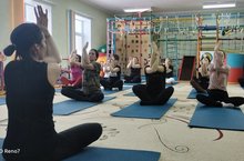 Неделя физкультуры проходит очень плодотворно. Еще одним мероприятием стала йогатерапия для наших педагогов. Для выполнения большинства асан из йоги нужна отличная растяжка. Грациозное исполнение инструкторами различных поз – это огромный и многолетний труд. Но начать путь к совершенству никогда не поздно. Йогой может заниматься абсолютно любой человек, даже если с растяжкой у него не очень.
