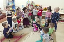 Театр - серле, театр - әкият, тылсым. Театр нәниләрне сихри дѳньяга алып керә, аларның сәләтен ачарга ярдәм итә, сѳйләм телен үстерә, актерлык осталыгына ѳйрәтә, эстетик һәм әхлакый тәрбия бирә. Икенче кечкенәләр төркемендә тәрбияләнүчеләр белән режим вакытларында бармак театры, өстәл театры, магнитлы курчак театры геройлары белән таныштык. “Шалкан”, “Теремкәй”, “Йомры икмәк” әкиятләрен сәхнәләштердек. Төрле рольләрдә катнашу, үзләрен нәни артистлар итеп тою балаларга бик ошады.