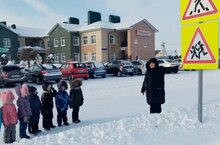 С целью закрепления знаний о безопасном поведении на улицах и проезжей части, совершенствования представлений о дорожных знаках и видах транспорта воспитанники средней группы совместно с воспитателем Загидуллиной Л.Х. совершили зимнюю познавательную прогулку.