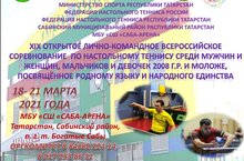 XIX открытое лично-командное Всероссийское соревнование по настольному теннису среди мужчин и женщин, мальчиков и девочек 2008 г.р. и моложе, посвящённое родному языку и народного единства 13.03.2021