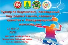Турнир по бадминтону, посвященный Году родных языков, народного единства и Международному женскому дню 10.03.2021