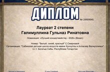 Индивидуальные исполнители: Фазуллина М. и Зайнуллина К. Так же ученица Фаттаховой Р.К. (фортепианное отделение) Нуриева Аделина стала обладателем Лауреата III степени.