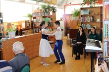23.03.2023 В читальном зале Сабинской районной библиотеки состоялся вечер- портрет ветерана труда, активного члена клуба «Олкэннэр » Галимзянова Камиля Аглямзяновича, посвященный 85-летнему юбилею. Учащиеся хореографического класса Сабинской детской школы искусств Медина Каримова и Бахтияр Тимершаехов (преп. Мубаракзянова А. З.) выступили перед юбиляром и гостями вечера. Вальс в их исполнении приукрасил этот вечер.