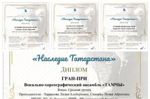 9 марта 2024 в Казани проходил Международный конкурс татарской культуры, музыки и искусства имени Н. Г. Жиганова " Наследие Татарстана " Результат отличный! Вокально- хореографический ансамбль "ТАМЧЫ"-( " Ай, былбылым)- удостоился звания ГРАН- ПРИ! ( преп. Харрасова Л. А, Свищëва Л. А). Преподаватели Харрасова Лилия Альбертовна и Свищëва Лилия Айратовна отмечены специальными дипломами " ЛУЧШИЙ ПРЕПОДАВАТЕЛЬ"! и Благодарственными письмами "За профессиональное мастерство".