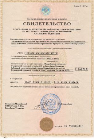 Свидетельство о постановке на учет Российской организации в налоговом органе