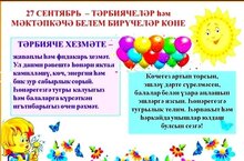 27 сентябрь - мәктәпкәчә белем бирүчеләрнең һөнәри бәйрәме. 27.09.2022