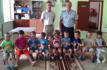 Балаларның ЮХИДИ хезмәткәрләре белән очрашуы 18.08.2016 Буген бездә кунакта ЮХИДИ хезмәткәрләре булды.Алар балаларны юлда йөргәндә үтәлергә тиешле таләпләр белән таныштырды. Актив булганнары өчен балаларга истәлекле буләкләр дә тапшырдылар.