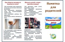 Памятка родителям и детям по безопасности в летних каникул 02.06.2025