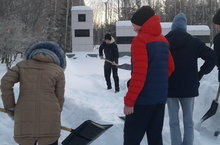 Укучылар "Обелиск" акциясе кысаларында обелискны кардан чистарттылар.