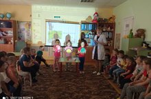 С целью формирования представлений о культуре питания, а также осознанного отношения к своему здоровью, систематизировать знаний детей о продуктах питания, воспитывать уважение к труду повара в детском саду прошёл досуг на тему "Правильное питание - залог здоровья". На первом этапе дети познакомились с профессией повара, посетив пищеблок, своими глазами увидели, как готовится полезная еда, где и как хранятся продукты. На втором этапе попробовали накрыть стол из полезных продуктов и угостить своих друзей. Все поняли, что для здоровья полезно не еда в красочных пакетах в магазине, а еда, которая готовится из полезных продуктов, а также овощи и фрукты. Питайтесь все правильно, будете здоровыми!