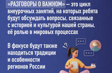 С нового учебного года во всех школах страны каждый понедельник начинается с занятия «Разговоры о важном». «Разговоры о важном» – необычный цикл занятий. Они нацелены на формирование гражданственности, патриотизма, и разговоры будут касаться воспитания нравственно-духовных ценностей, что и отражено в каждой теме проекта.