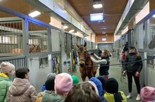 Профориентационная экскурсия учащихся 1 и 4 классов в КСК "Сабантуй" (12.10.2023 г.). Цель: знакомство с организацией, знакомство с профессиями тренера по стрельбе, ветеринара, тренера по конному спорту.