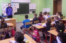 Бүген ОБЖ фәне укытучысы Ахметшин И.И. 1-4 сыйныф укучылары белән юлда йөрү кагыйдәләрен үтәү,юл билгеләре турында әңгәмә оештырды.