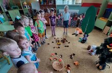 С целью учить детей внимательно слушать, определять название животных, выделять характерные особенности животных, воспитывать заботливое отношение к животным во второй младшей группе было организовано мероприятие "В гости к лесным жителям". Ребята на веселом паровозике под музыку отправились в гости. На пути к лесным зверятам детям встретился грустный зайчик. Ребята сыграли с ним в игру «Зайка серенький сидит». Развеселив зайку, юные путешественники отправились дальше. Пришлось ребятам встретиться с грустным медведем и лисой. Дети сыграли с мишкой в подвижную игру «У медведя во бору», а вместе с лисой станцевали танец. Также дети помогли собрать грибочки ежику и поиграли с ним в игру «Помоги собрать грибочек». В ходе мероприятия дети узнали много нового и интересного, получили положительные эмоции и отличное настроение на весь день.