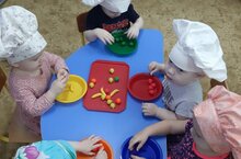 Ведущей деятельностью детей дошкольного возраста является игровая деятельность. Дидактическая игра представляет собой многословное, сложное, педагогическое явление: она является и игровым методом обучения детей дошкольного возраста, и формой обучения детей, и самостоятельной игровой деятельностью, и средством всестороннего воспитания ребенка. Сегодня с целью формирования представления о труде взрослых и воспитывать уважительное отношение к нему, научить различать и назвать основные цвета, учить группировать предметы по цвету с детьми второй группы раннего возраста была проведена дидактическая игра "Разложи фрукты по цвету". Они обогатили словарный запас по теме "Фрукты", развивали мелкую моторику, зрительное восприятие и внимание.