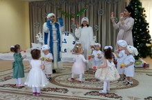 Сегодня в нашем детском саду прошёл новогодний утренник во вторых группах раннего возраста. Малыши пришли нарядные, превратившись в весёлых зайчиков, красивых снежинок. Все закружились в новогоднем хороводе. Малыши веселились у нарядной ёлочки с добрым Дедушкой Морозом, красавицей Снегурочкой, шустрым Зайчонком. Они водили с ними хороводы, играли в снежки, танцевали с погремушками, поиграли в волшебную игру «Ёлочка свети!». Дедушка Мороз в конце праздника всем подарил подарки. Утренник прошёл в теплой сказочной атмосфере.