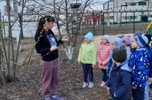 Сегодня продолжая наблюдения за весенними изменениями в природе с детьми старших групп воспитатели организовали наблюдение за вербой. Они обратили внимание детей на деревья, растущее на участке детского сада. Рассказали детям, что верба первой среди других растений оживает после зимней спячки. Ребята отметили, что она мягкая, пушистая, нежная, желтенькая, веточки у вербы коричневые и почки уже на дереве набухли.Такие наблюдения не просто дают детям новую информацию, а помогают погрузиться в удивительный мир личного живого общения с природой, вступить в непосредственный диалог с ней. Общение с природой обогащает духовную сферу ребенка, способствует формированию положительных моральных качеств.
