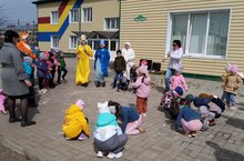 С целью создать у детей радостное, веселое настроение, закрепить полученные знания о солнце, его значении в жизни людей и природы в детском саду был организован праздник, посвященный к Международному дню Солнца. Во время праздника дети узнали как влияют теплые солнечные лучи на пробуждение природы. В гости к ребятам пришли лесные жители, Солнышко, Туча. Они вместе играли в игры «Солнечные зайчики», «Солнышко и тучка»,танцевали, рисовали на асфальте солнечные лучики. В этот день природа порадовала ребят отличной погодой.
