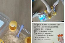 Учитель-логопед Габдрашитова Ф.М. в своей работе большое внимание уделяет на развитие мелкой моторики, внимания, усидчивости, координации движений. Сегодня была проведена сенсорная игра "Желтые цыплятки". Ребята с удовольствие покормили цыплят.
