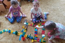 Воспитанники средней группы №1 с удовольствием играют с различными конструкторами. Вот и сегодня умелые руки и фантазия девочек построили парк аттракционов.