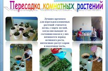 Сегодня воспитатели Искандырова Лидия Хатмуллаевна и Башарова Фания Фанилевна пересадили комнатные растения. Они говорят, что лучше всего пересаживать большинство комнатных культур в весенние дни. На основании специфики конкретного растения данные мероприятия проводят ежегодно или раз в несколько лет. Пересадка очень важна по той причине, что когда-то земля станет истощенной, вследствие чего нужно ее освежить. Помимо прочего, данные манипуляции помогают улучшить прохождение воздуха в почву горшка. Требуется менять «место жительства» цветка, когда почва закисла, если корни страдают от гниения, если в земляном коме так много частей корня, что они проходят сквозь дырки посадочной емкости.