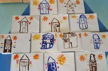 На занятиях по рисованию дети средней группы учились рисовать большой дом, передавать прямоугольную форму стен, ряды окон. Развивали умение дополнять изображение на основе впечатлений от окружающей жизни, украшать его флагами, цветными огнями.