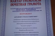 Поздравляем с грамотой Татарского Республиканского комитета профсоюза работников народного образования и науки РФ заведующего детского сада Адгамову Г.Р. "За высокую социальную эффективность и развитие социального партнерства"!