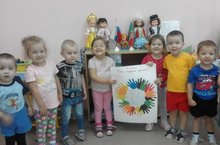 Сегодня воспитатели группы провели беседу с детьми второй младшей группы, с целью познакомить детей с праздником "День народного единства". А также расширить представление детей о родном крае, стране, в которой мы живем. В заключении дети выполнили коллективную работу из разноцветных ладошек. Аппликация принесла детям только радость и удовольствие от коллективного творчества.