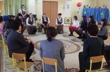 Во вторых младших группах раннего возраста с целью ознакомления родителей с понятием "адаптация", "адаптационный пеиод", помочь родителям понять своих детей, создание благоприятной атмосферы общения в семье,прошли родительские собрания с элементами тренинга "Мы рады с вами познакомиться". Родители делись с впечатлениями о детском саде, воспитатели объясняли о протекании адаптационного периода по каждому ребенку. Проводили музыкальные игры и завершили родительское собрание мандалотерапией. Родители имели возможность воспитателям и своим детям пожелать успехов в дошкольной жизни.