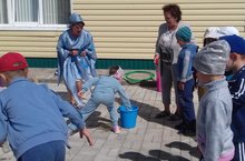 С целью создания у детей радостного настроения, показа огромного значения воды для всех живых существ, о том, как человек использует в своей жизни воду, уточнения представления детей о разных состояниях воды, развития умения отгадывать загадки, для детей было проведено развлечение «Царица-вода всем нужна!».Они с большим интересом участвовали в эстафетных играх, организованные с использованием воды.