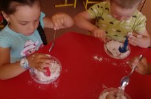 Дети старшей группы сегодня изготовили антистрессовую игрушку из подручных средств: воздушного шара, муки и крахмала. После того, как игрушка была готова, ее разукрасили и она превратилась в Капитошку. Детям очень понравилось создавать игрушку и конечно же с ней играть.