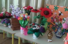 Родители старшей группы №2 организовали выставку поделок "Весеннее настроение". Наши мамы свое настроение накануне Женского праздника 8 Марта сравнили вот с такими красивами цветами. Спасибо вам за вашего умение радовать окружающих!
