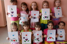На занятии дети подготовили поздравительные открытки к весеннему празднику.