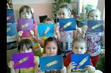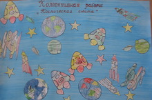 Коллективная работа "Космическая Сюита" во II младшей группе № 2 11.04.2014 Программное содержание НОД по разделу "Художественное творчество": на этой неделе ребята познакомились с праздником «Днем космонавтики». Итоговым мероприятием было создание коллективной работы. В ходе которой, дети учились разукрашивать каран-дашами, не выходить за рамки закрашиваемой детали, а также аккуратно клеить свой рисунок на общей композиции. Воспитать любовь к коллективному творчеству. Вызывать чувство радости от созданного изображения.