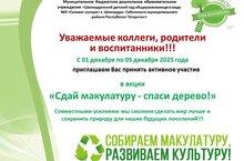 Внимание! Внимание!Уважаемые коллеги, родители и воспитанники! С 01 по 05 декабря 2025 года в нашем Детском саду объявляется акция по сбору макулатуры «Сдай макулатуру - спаси дерево». Сбор макулатуры проходит на территории учреждения, в группах.