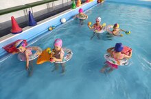 В нашем детском саду воспитанники посещают занятия в бассейне и летом. Каждую неделю воспитанники от 2 до 7 лет погружаются в удивительный мир царицы Воды. Инструктор по плаванию проводит разнообразные игровые упражнения для освоения техники спортивных и облегченных способов плавания, подвижные игры на воде. Плавание, как вид спорта, эффективно способствует улучшению состояния здоровья детей.