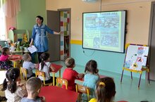 Бүген безнең балалар бакчасы базасында Саба муниципаль районы мәгариф учреждениесе тәрбиячеләре өчен "Мәктәпкәчә яшьтәге балаларның яшәү тирәлеге белән уңайлы һәм куркынычсыз хезмәттәшлеге" дигән темага район семинары узды. Семинар традицион рәвештә мәктәпкә хәзерлек төркеме балаларының кунакларны сәламләве белән башланды, Семинарны бакча мөдире Әдһәмова Гүзәл Рафис кызы ачты, кунакларны семинар программасы белән таныштырды. Семинар барышында юл йөрү кагыйдәләрен өйрәнү буенча "Караңгыда күренеп тор!, янгын куркынычсызлыгы буенча "Балаларга ут һәм янгын турында" дәресләре, физкультура-уен дәресе "Туристик поход" , тимер юлда куркынычсызлык буенча "Поездда танып белү сәяхәте" күңел ачу чарасы, бассейнда "Суда куркынычсызлык кагыйдәләре" дәресе, "Мобиль телефонны куркынычсыз куллану" танып белү-профилактика чаралары оештырылды. Шулай ук Шекше "Акчарлак" балалар бакчасы тәрбиячесе Таҗиева Л.А. һәм Корсабаш "Кояшкай" балалар бакчасы тәрбиячесе Рәхимуллина Э.Т. семинар темасы буенча эш тәҗрибәсе белән уртаклаштылар. Бу семинар төрле эш формаларын һәм ысулларын кулланып, тәрбияләнүчеләрнең тормыш иминлеген тәэмин итү буенча педагогларның һөнәри осталыкларын арттыру максатыннан оештырылды. Семинар ахырында түгәрәк өстәл узды, анда педагоглар үзләренең тәэсирләре белән уртаклаштылар. Семинарда тәкъдим ителгән материаллар педагогларга балалар белән эшләүдә ярдәм итәр, балаларны яшәү тирәлеге белән куркынычсыз аралашу буенча тәрбияләүдә һәм өйрәтүдә яңа идеяләр һәм алымнар эзләүгә этәргечбулыр дип өметләнәбез.