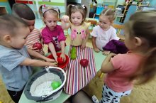 Балаларның сәламәт яшәү рәвеше турында белемнәрен ныгыту, яшелчә һәм җиләк-җимешләрдә пычрак һәм микроблар бар дигән төп фикерне бирү максатыннан, 1 нче номерлы икенче кеченәләр төркемдә "Яшелчә һәм җиләк-җимешләрне ашар алдыннан юарга кирәк" дигән темага дәрес үткәрелде. Дәрес барышында балалар яшелчә һәм җиләк-җимешнең файдасы, аларны юмыйча ашарга ярамавы турында белделәр. Чөнки ашказаны авыртачак. Алар яшелчәләр һәм җиләк-җимеш муляжларын кулланып, уен формасында, пычракны һәм барлык микробларны юарга өйрәнделәр.